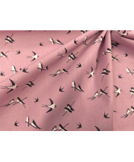 Tissu 100 % coton “Hirondelles” – Motif oiseaux noir et blanc fond rose